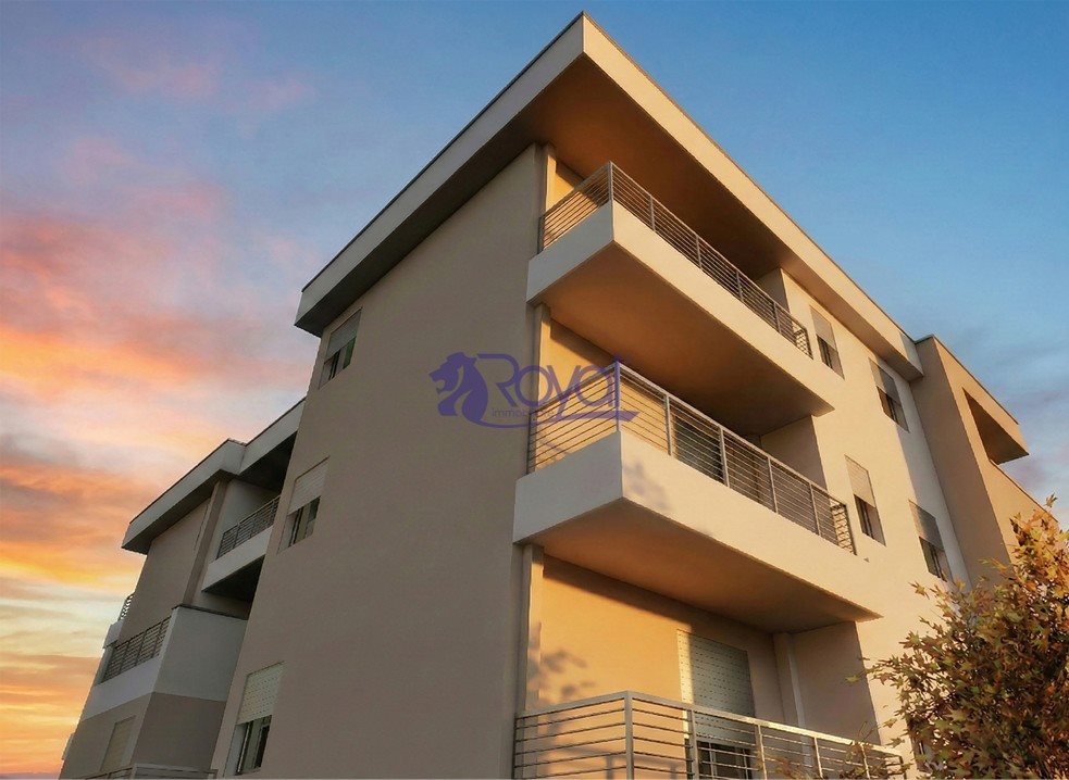 Appartamento suddiviso in soggiorno / cucina serviti da terrazzo di 32 mq, disimpegno, bagno, camera matrimoniale con bagno privato e balcone e camera singola. Abitazione con tripla esposizione esposizione sud/ovest/est