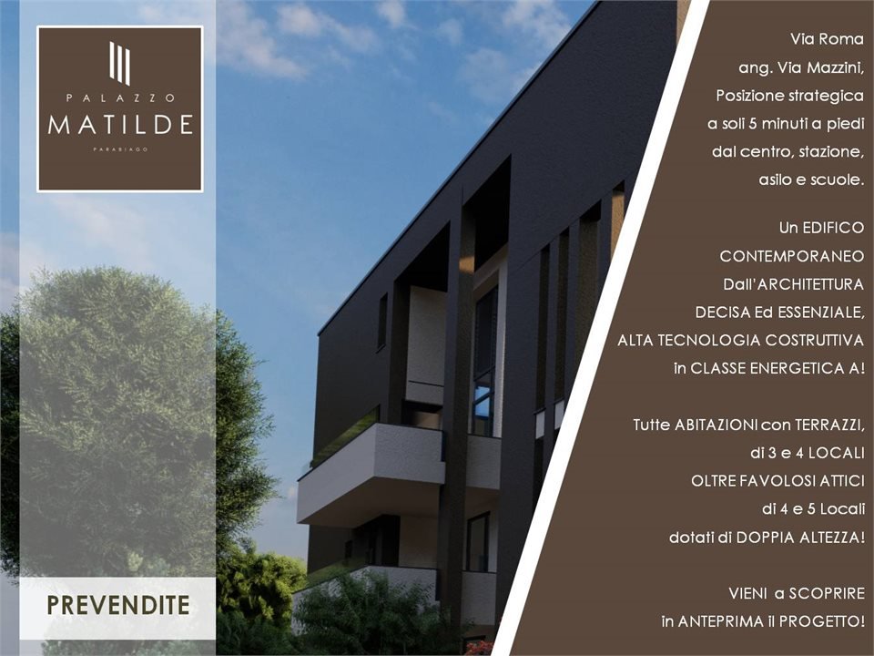 PALAZZO MATILDE si compone da nove abitazioni tra soluzioni di tre locali, quattro locali oltre due favolosi attici di quattro o cinque locali con living a doppia altezza e soppalchi.
