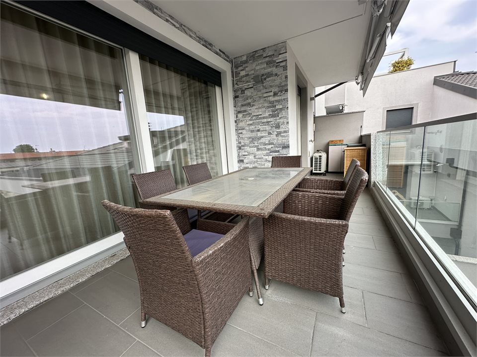 Situato nel centro del paese, in piazza Carroccio, con tutto il vantaggio di avere i servizi primari a portata di mano, in un signorile condominio di fine 2017, appartamento posto al piano secondo suddiviso in ingresso, cucina abitabile, soggiorno, terrazzo coperto a servizio di entrambi gli ambienti living e dotato di tende da sole motorizzate con sensore vento, disimpegno, bagno di servizio, bagno principale, camera matrimoniale e camera singola. Inoltre la favorevole esposizione est-sud-ovest assicura molta luce durante gran parte della giornata. L'abitazione, dalla planimetria regolare e facilmente arredabile, si presenta in perfette condizioni, dotato di impianto di climatizzazione con pompa di calore, tapparelle motorizzate con apertura / chiusura centralizzata, riscaldamento a pavimento, predisposizione allarme. La palazzina è dotata di impianto di riscaldamento ibrido con caldaia a condensazione - pompa di calore, pannelli solare a supporto della produzione di acqua calda sanitaria e impianto fotovoltaico condominiale. Completano la proprietà una cantina ed un box doppio in lunghezza. Possibilità di acquisto con arredo di cucina, bagni e camera matrimoniale, tutti in perfette condizioni. LIBERA SUBITO.