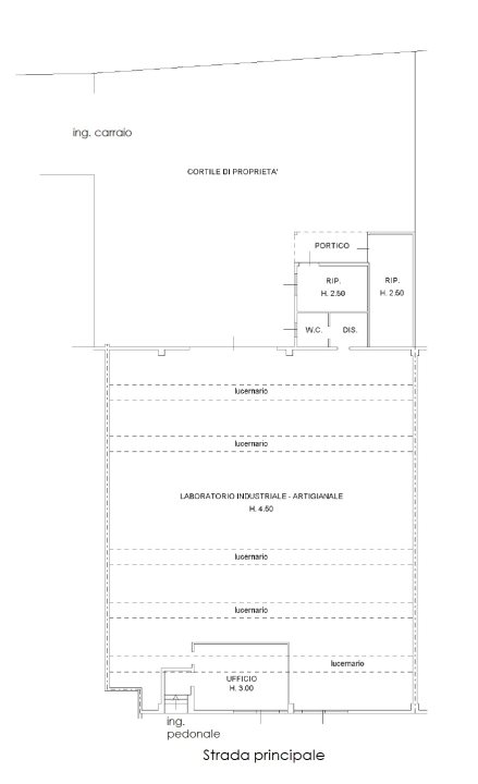 In zona strategica per i collegamenti e per la stazione ferroviaria, posto su strada di forte visibilità per l'inteso passaggio, capannone industriale / artigianale di 510 mq con area cortilizia privata di ben 350 mq. L'immobile è composto da area produttiva di 485 mq comprensivi di ripostiglio e wc, oltre ufficio di 25 mq, completo di impianto pompa di calore, dotato di ingresso indipendente con vetrate fronte strada principale, ideali per poter adibire questo immobile anche a locale commerciale.