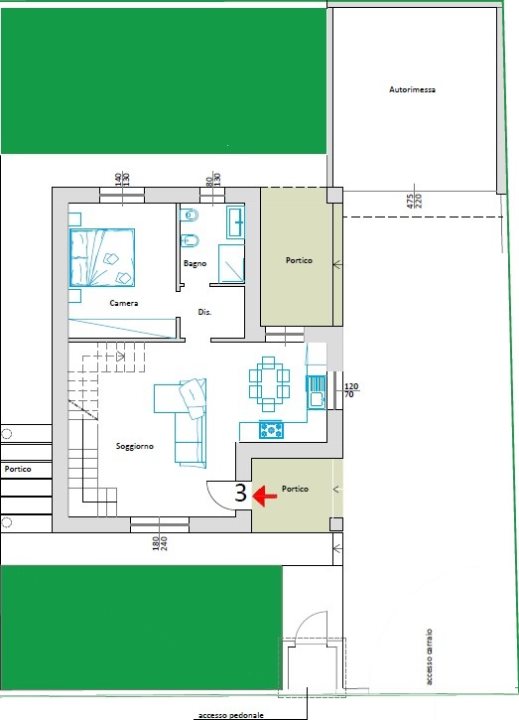 VILLA 3 - € 570.000. Villa di 155 mq, Giardino di 220 mq, Porticati di 26 mq e Terrazzo di 11 mq. Abitazione così suddivisa: piano terra ben 80 mq con ingresso su ambia zona living, cucina abitabile o aperta a preferenza del cliente servita da porticato, disimpegno, camera matrimoniale e bagno; piano primo di 75 mq con camera matrimoniale, camera doppia servita da terrazzo, camera singola e bagno. Il giardino di 220 mq circonda i quattro lati della casa. Il box è doppio in larghezza.