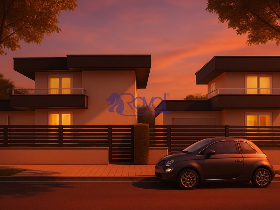 VILLA 1 - € 515.000. Villa di 144 mq, Giardino di 165 mq, Portico di 20 mq e Terrazzo di 20 mq. Abitazione così suddivisa: piano terra di 66,50 mq con ingresso su ambia zona living, cucina abitabile o aperta a preferenza del cliente servita da bellissimo porticato di 20 mq, disimpegno, bagno; piano primo di 77,50 mq con camera matrimoniale servita da terrazzo, camera singola, camera doppia e bagno. Il giardino di 165 mq circonda i quattro lati della casa. Il box è doppio in larghezza.
